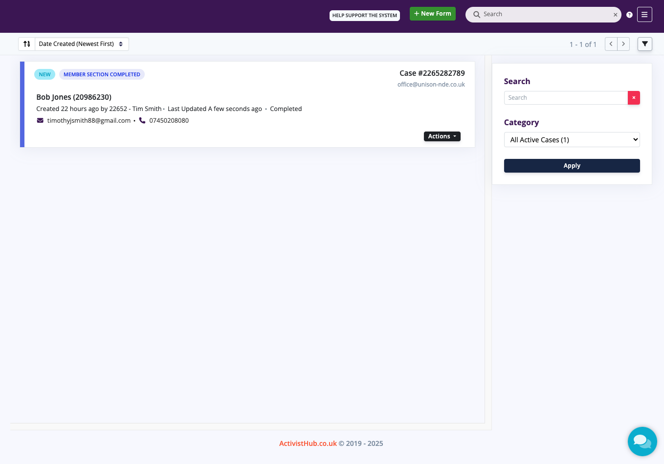 If you have sent a CASE form but not received your login details then please email caseforms@activisthub.co.uk so we can look into this for you.