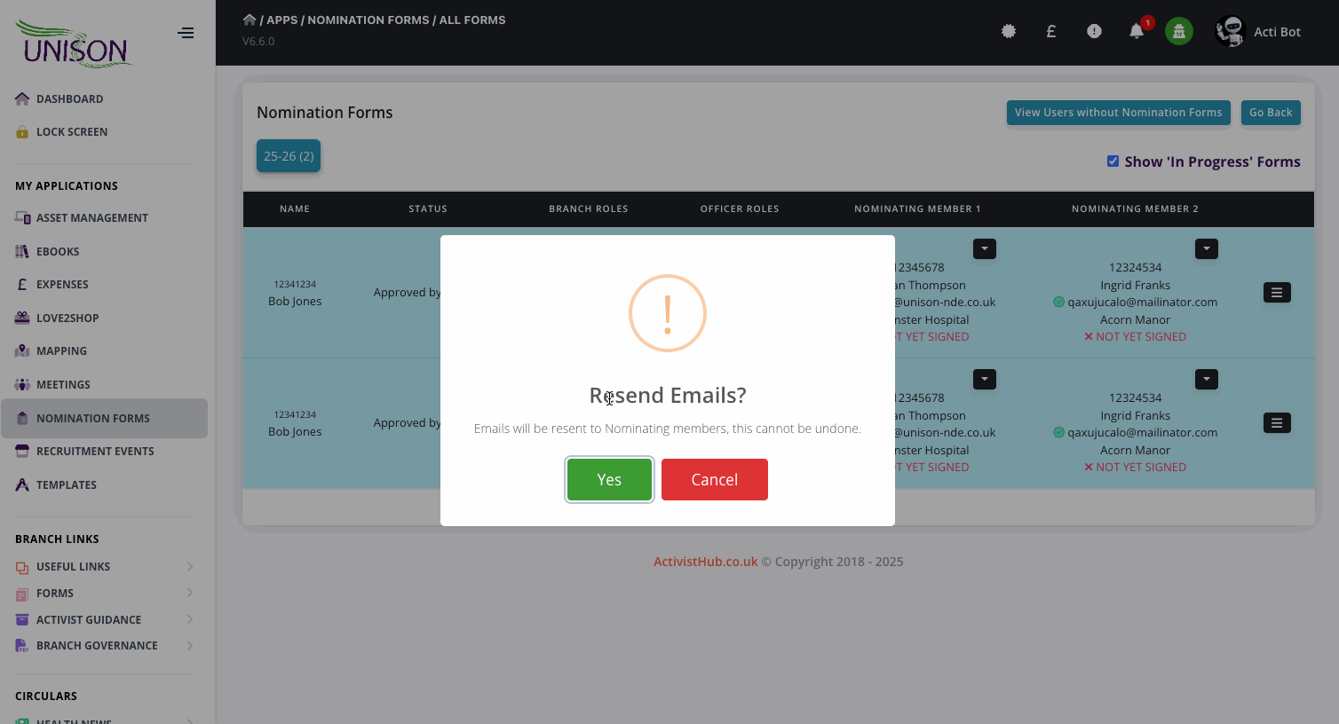 Read and then confirm the notification by clicking Yes, Thats it, emails will now be resent to the outstanding members and you will see the last date sent shown under the members' column.